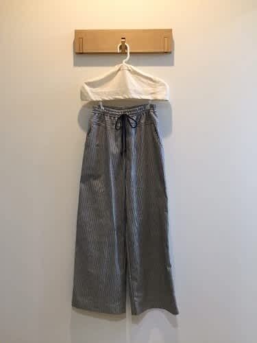 次女用、ストライプコットンで、ワイドパンツを作りました。 平織のコットン、厚みは中くらいですが、 転写プリントで デニムのように見えます。そんなに厚みはありません。 後ろ 後ろポケット高めに二つ、 脇ポケット 残った生地で、90ベビーパンツ 使い切…