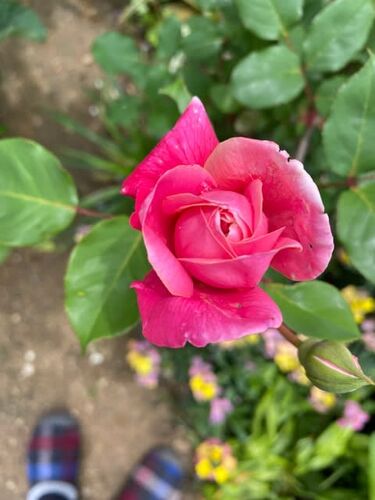 雨上がりの夕方に撮りました。 モッコウバラの次に咲いたのは 八坂(木立性、四季咲き) 剪定後再度咲いてきた ビオラ セイヨウイワナンテン ヒメウツギ 門のところの ビオラ クリスマスローズ オステオスペルマム うきうき小径 門裏の立水栓 ジューンベリー