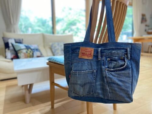息子から頼まれた ジーンズから作るトートバッグ、 穴空いているやん。 8年ほど履いたジーンズで、お嫁さんにトートバッグを作ってあげてー、とか。 よっしゃー。 世界に1つだけやでー、名前入れてあげようか? それは要らんわ。 内側は これまた古いバンダ…